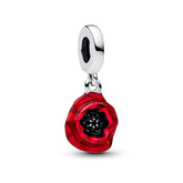 Pandora Moments Red Flower Dangle Charm, Silver, 793917C01
