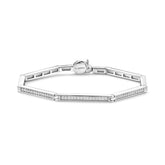 The TI SENTO Milano bracelet has a geometric design with its silver parts forming a hexagon. Three sides of the hexagon also feature sparkling zircons. The stylish bracelet is suitable for wearing alone or combining with other TI SENTO jewelry. The bracelet is available in three different lengths: S, M and L. The width of the bracelet is 3 mm.