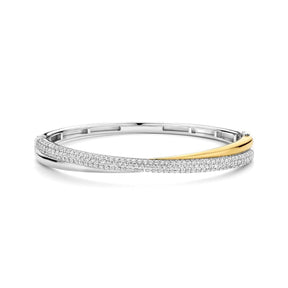 TI SENTO Milano bracelet has a stylish design and a beautifully twisting section of pave-set zircons. The bracelet is made of silver and is partially yellow gold-plated. The bracelet is available in three different sizes: S, M and L. Its width is 7 mm at the widest point and 4 mm at the narrowest point.