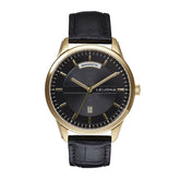 Stylish Yellow Gold-Tone Leijona Hoods Töölö 5120-4670 Watch with Black Leather Strap