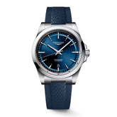 Steel Grey Longines Conquest L38304929 Watch with Blue Dial and Blue Rubber Strap, 41 mm