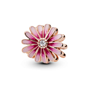 The Pandora Moments Pink Daisy Flower charm features a beautiful pink daisy. The flower petals are made of pink enamel and the center is a sparkling zircon. The charm is made of 14 karat rose gold-plated jewelry metal. The charm is suitable for combining with Moments bracelets and necklaces. Combine Pandora charms and clasps to create your own personal ensemble.