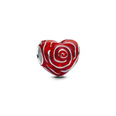 The Pandora Moments Rose Heart charm features a beautiful heart shape and rose pattern with red enamel. The charm is made from recycled sterling silver. The charm is suitable for combining with Moments bracelets and necklaces. Combine Pandora charms and clasps to create your own personal ensemble, or give it as a gift to someone special.