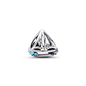 The Sailboat charm from the Pandora Moments series features a sailboat, blue crystals and clear zircons. The charm is made from recycled sterling silver. The charm is suitable for combining with bracelets and necklaces from the Moments series. Combine Pandora charms and clasps to create your own personal ensemble, or give as a gift.