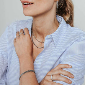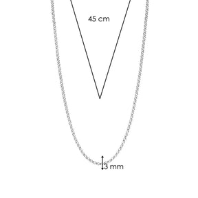 The stylish TI SENTO Milano necklace is made of a silver rolo chain. The simple yet striking necklace is suitable for wearing alone or combining with other TI SENTO jewelry. The silver necklace is 45 cm long and 3 mm wide.