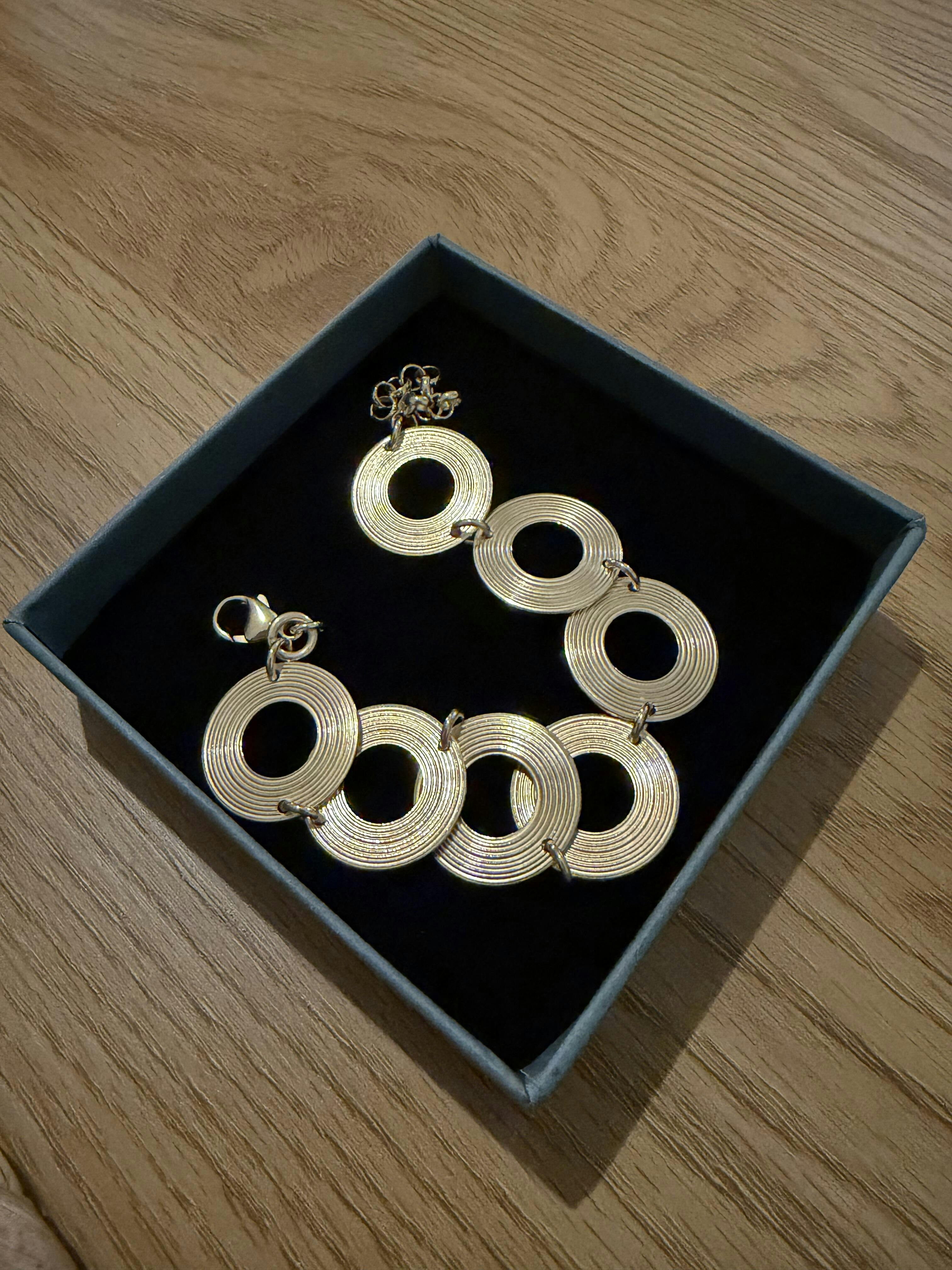 Taivaankappaleiden on uskottu vaikuttavan kohtaloon, ja niiden asennoista on luettu tulevaa. Kosmos-korujen ympyrät ja spiraalit, täydellisyyden ja äärettömyyden ikivanhat symbolit, kuvastavat meitä ympäröivää päättymätöntä maailmankaikkeutta, jossa taivaankappaleet vaeltavat, kukin omalla radallaan, kukin omaan tahtiinsa. Korujen kirkas pronssi loistaa kuin aurinko lämpimän kullanhehkuisena.