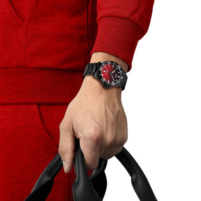 Musta Tissot Seastar 1000 Quartz T1204103342100 rannekello liukuvärjätyllä puna-mustalla kellotaululla