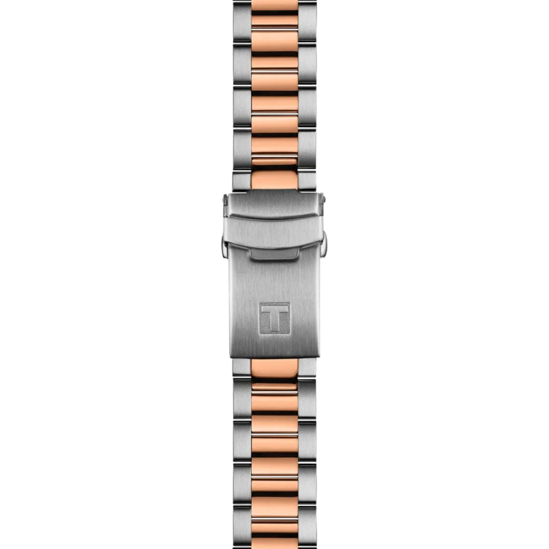 Kaksivärinen Tissot Seastar 1000 Powermatic 80 T1208072205101 rannekello tummalla kellotaululla ja ruusukullanvärisillä yksityiskohdilla