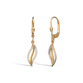 Keltakultaisissa Vittoria-korvakoruissa on kauniit lehtimäiset riipukset, joiden reunoja koristavat säihkyvät zirkonit. Hillityn tyylikkäät korvakorut sopivat niin arkeen kuin juhlaankin. Korvakorujen materiaalina on 14 karaatin keltakulta ja niissä on koukkukiinnitys saranalla.